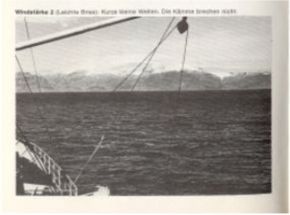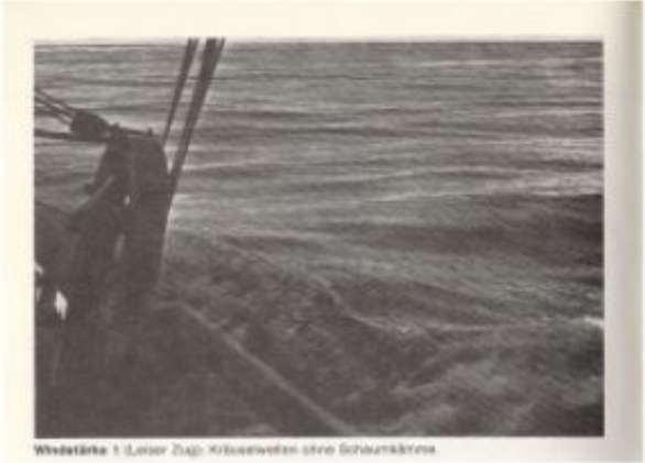 Windstärke 1 ( leiser Zug ) Kräuselwellen ohne Schaumkämme