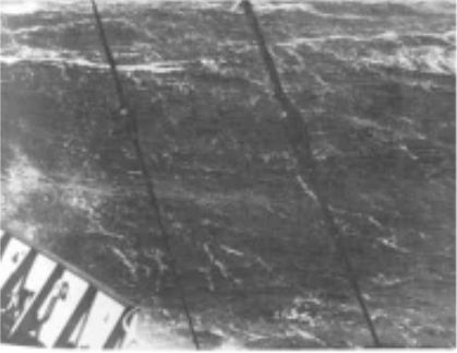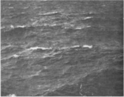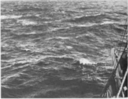 Windstärke 7 ( steifer Wind ) Die Schaumflächen bilden Streifen in die Windrichtung.
