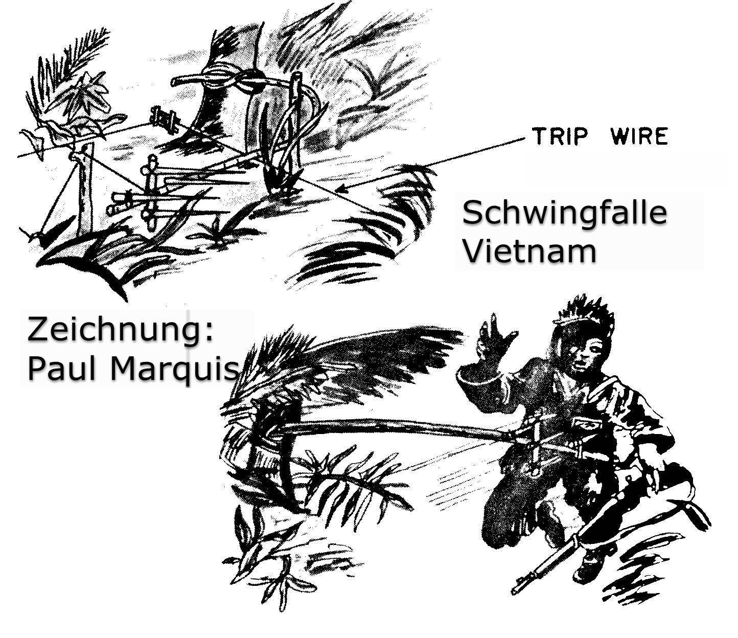 Man kann auch noch Schwingfallen – Bamboo Whip genannt - bauen, die ebenfalls von den Vietcong eingesetzt wurden.