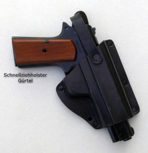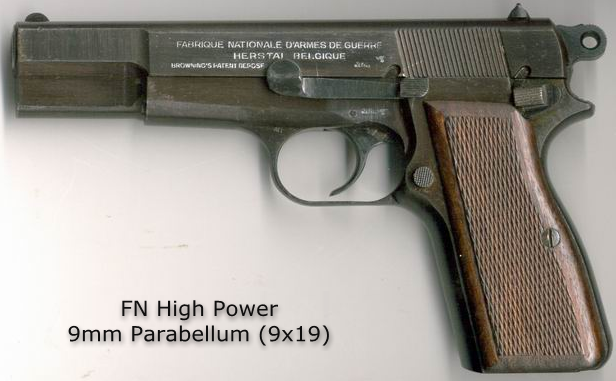 Hersteller. Fangen wir mit der Browning FN High Power an. Sie wurde im Jahre 1922 entwickelt und wird heute noch weltweit unter Lizenz gefertigt. Sie hat ein zweireihiges Magazin - die Patronen liegen sozusagen im Zickzack im Magazin, welches 13 Patronen Kaliber 9mm Para fasst zuzüglich einer Patrone im Lauf. Die High Power ist eine zuverlässige, ziemlich präzise schiessende Waffe, die jedoch ziemlich schwer ist. Sollte einem mal die Munition ausgehen, kann man sie immer noch als Keule benutzen.