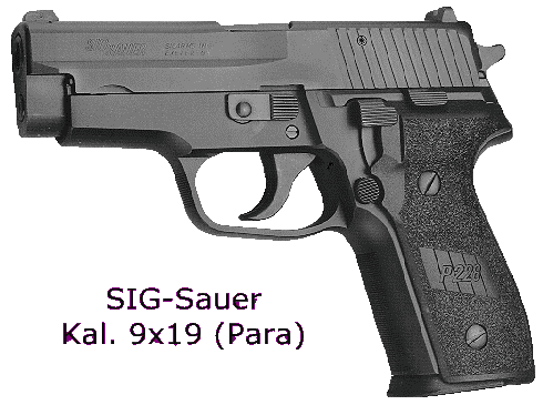 Dann hätten wir noch die SIG-Sauer P228, die in mehreren Kalibern hergestellt wird. Im Kaliber 9mm Para hat das Magazin ein Fassungsvermögen von 15 Patronen. Die Pistole ist qualitativ hochwertig verarbeitet und schiesst sehr präzise.